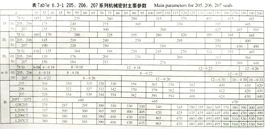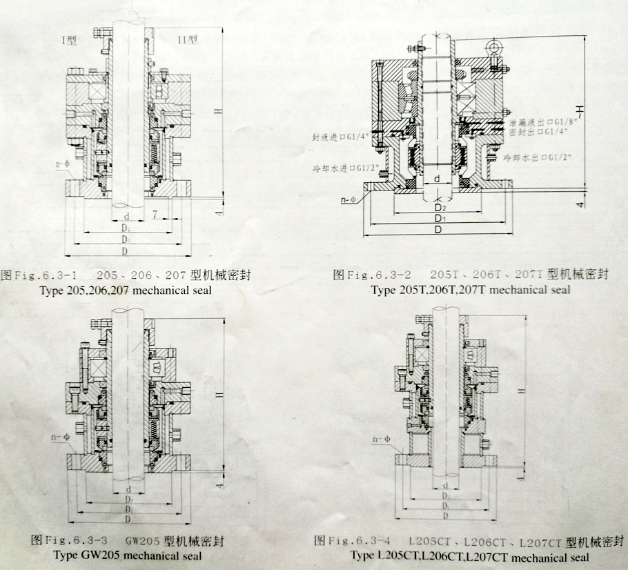 205T、206T、207T型是對(duì)上述對(duì)應(yīng)機(jī)封的改進(jìn),其軸承改為兩個(gè)圓錐滾子軸承,可代替機(jī)架的支承軸承室,也可制成整體軸結(jié)構(gòu),以利安裝維修,并提高支撐剛度。